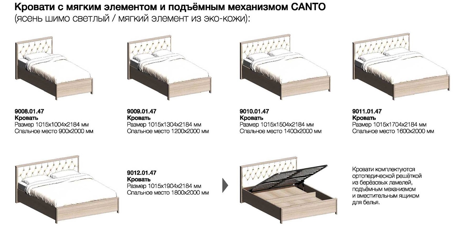 Модульная программа мебели для спальни «Канто» представляет собой набор отдельных, самостоятельных секций, стилистически и функционально сочетающихся между собой: тумбы, комоды, вместительная шкафная группа, продуманные до мелочей кровати с подъемными механизмами, обеспечивающие дополнительное место хранения.
